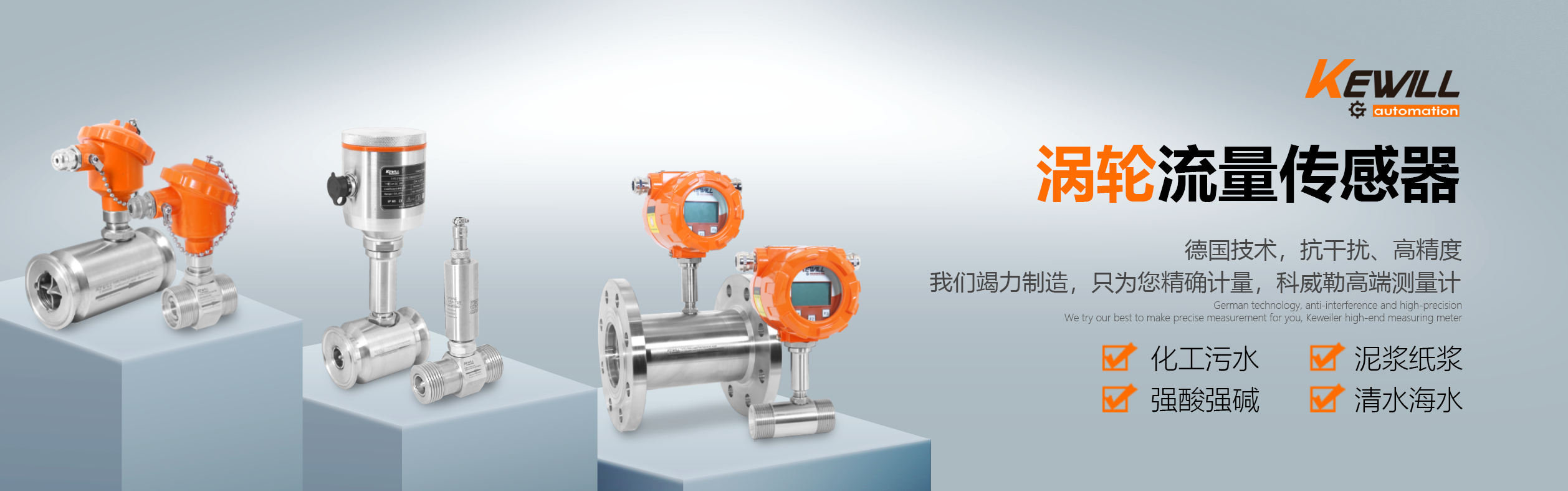 科威勒(中國)自動化有限公司是KewillAutomationGmbH(德國科威勒自動化公司)的全資子公司,主要銷售產(chǎn)品有:流量計,電磁流量計,進口流量計,進口電磁流量計,KEWILL(科威勒),溫度傳感器,流量傳感器,壓力傳感器,液位開關(guān),壓力開關(guān),物位開關(guān),溫度開關(guān),流量開關(guān),液位計等,銷售熱線:021-54430662. 德國科威勒 (KEWILL)成立于1975年,位于德國 Flughafenstr. 1-4 2325 Hamburg,主要生產(chǎn)流量開關(guān)、流量監(jiān)控器、流量計,是當(dāng)前世界上較大的小口徑流量監(jiān)控器和開關(guān)生產(chǎn)工廠。1993年通過了ISO9001國際認 證,1999年發(fā)明了熱傳溫差技術(shù)并成功運用到流量檢測領(lǐng)域并已成為行業(yè)標(biāo)準。 科威勒(KEWILL)公司擁有嚴格的質(zhì)檢管理體系和完善的售后服務(wù)體系,高品質(zhì)和良好的聲譽奠定了其在行業(yè)內(nèi)世界先進地位。